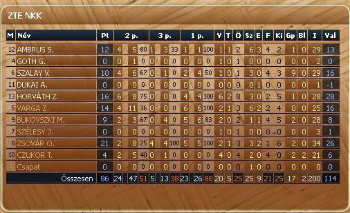 ZTE NKK: Bukovszki (9), Zsovár (21/12), Szélesy, Varga ( (14), Horváth Zs. (16). Csere: Szalay (10), Czukor (4), Ambrus (12/3), Dukai. Vezetőedző: Gáll Tamás.