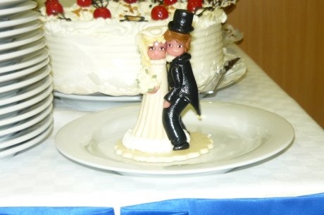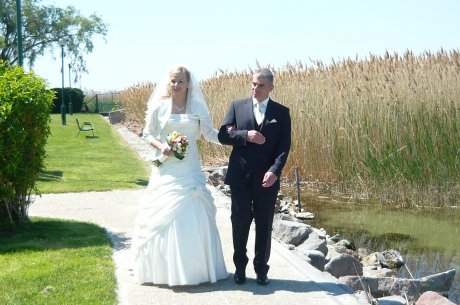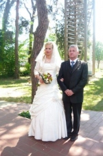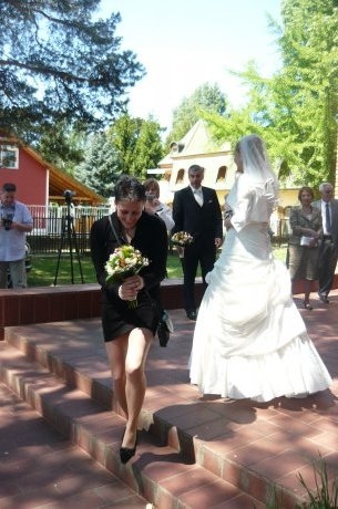 Ezen a szép májusi délelöttön ( a polgári esküvő már délutánba hajlott) most Őket ünnepeltük. Ragyogó napsütés és kiváló hangulat melett ültük meg a nászt.